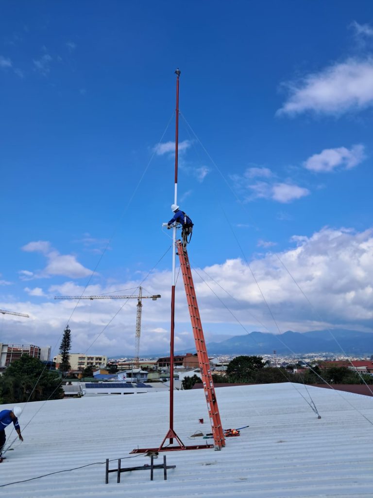 Este mástil fue instalado en una ubicación estratégica del techo para maximizar su radio de protección.
